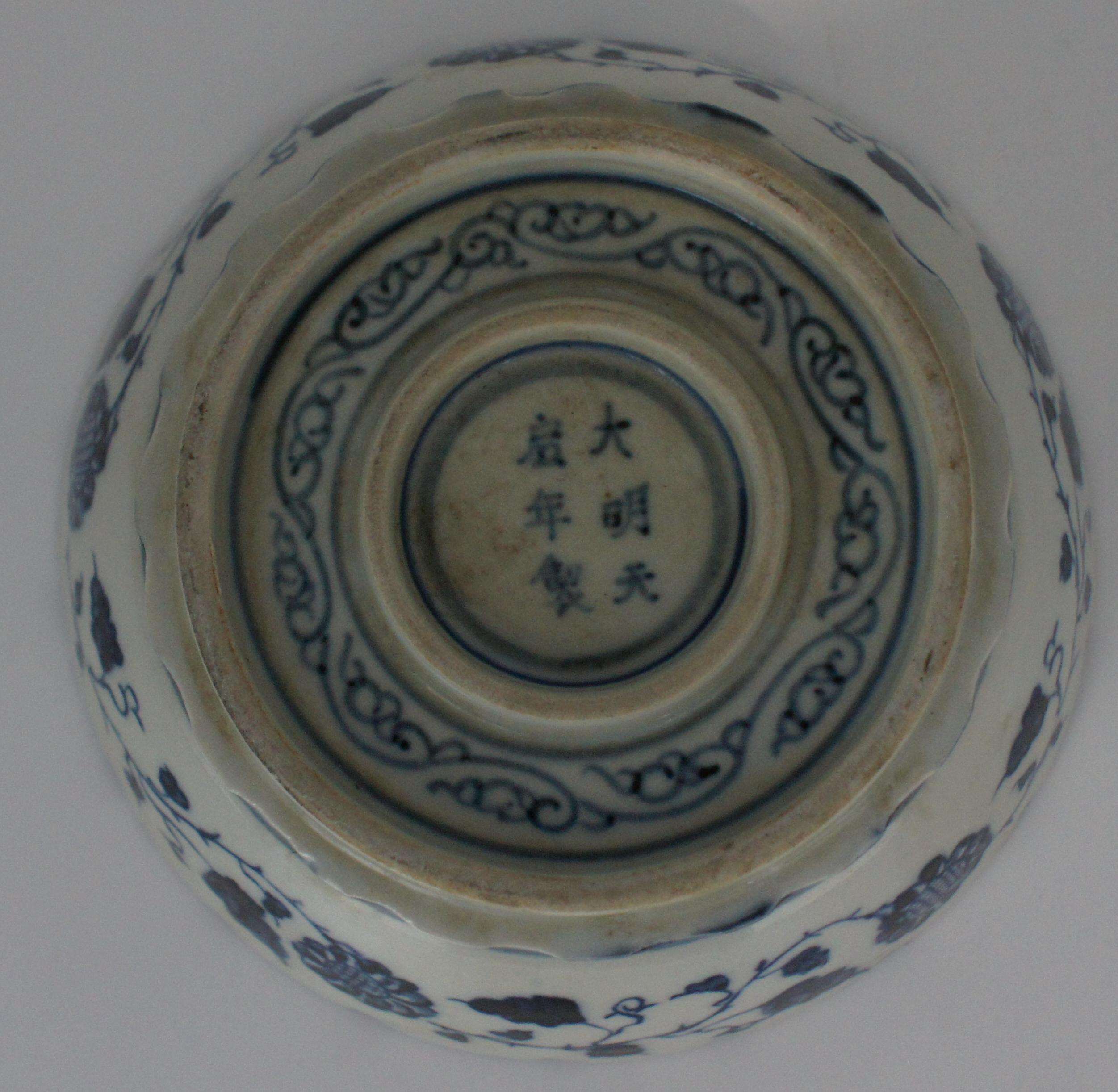 大明天启款 青花碗 口19cm