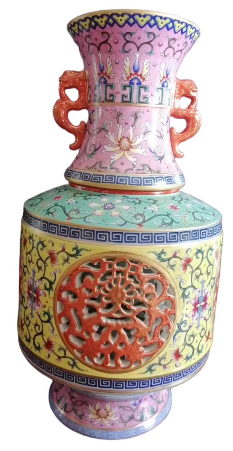 乾隆洋彩时时报喜转心瓶 高40.5*口23.5*底14cm