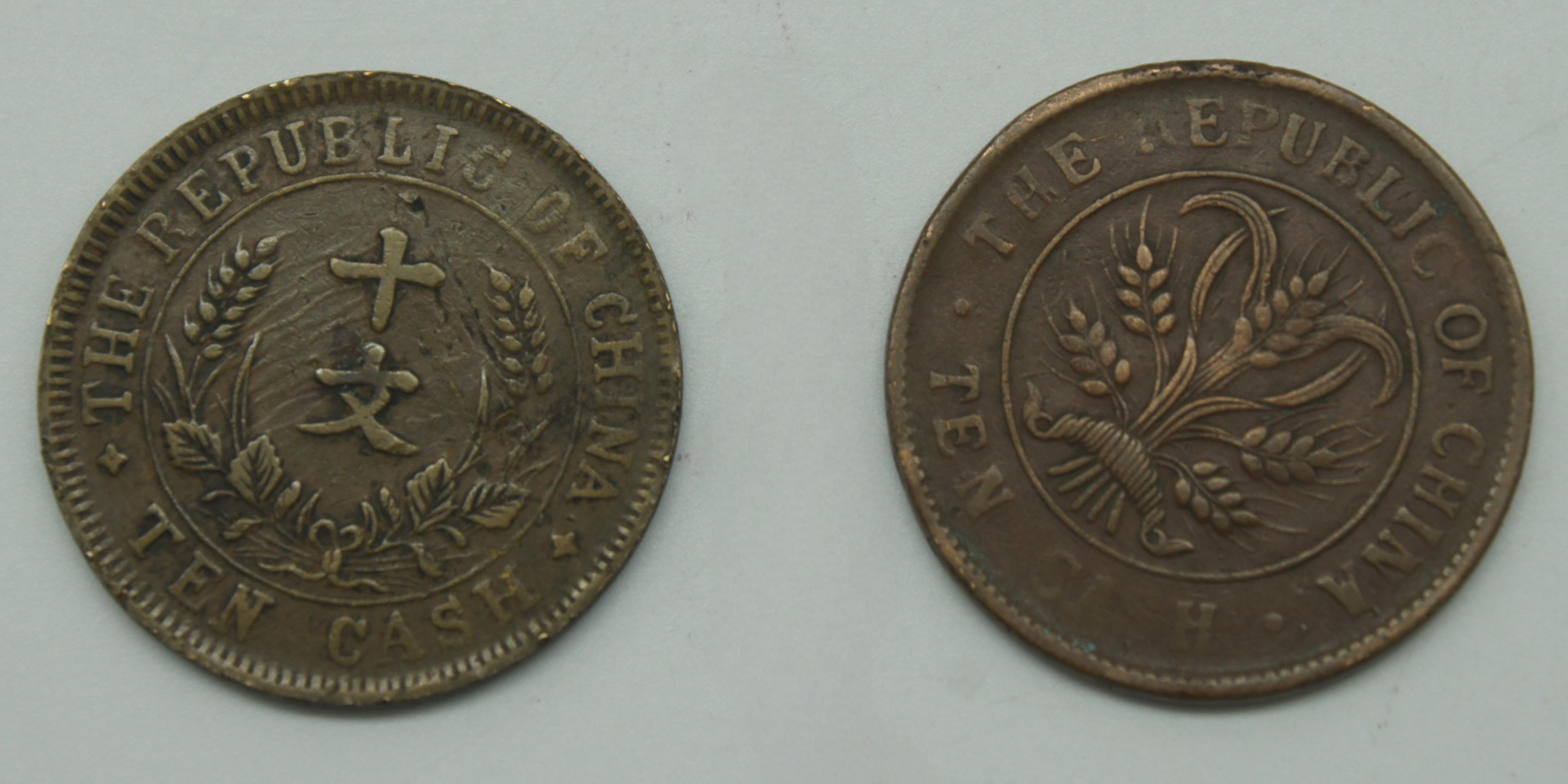 民国双旗币当十、纪念币一组 2枚 14.6g