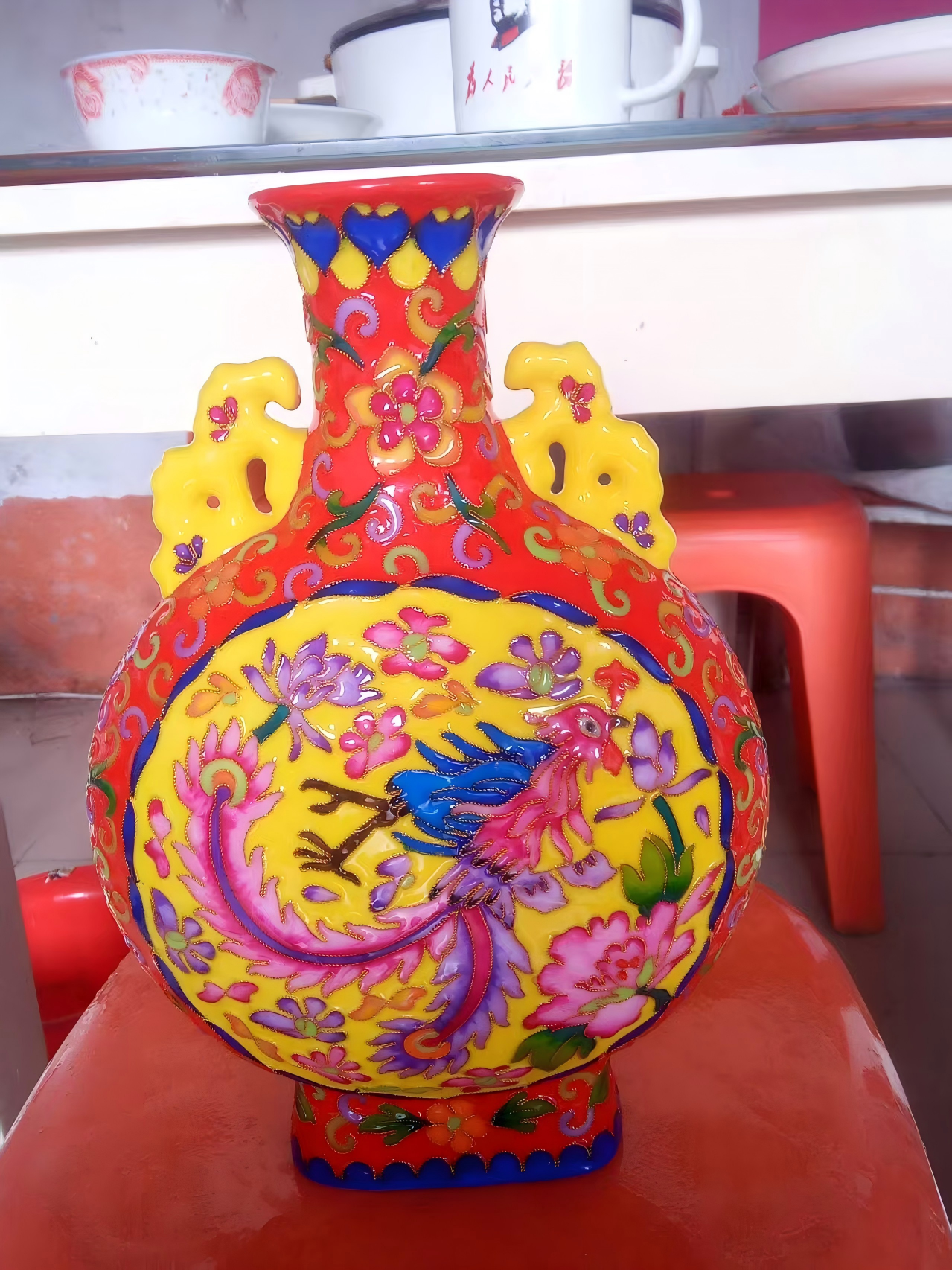 珐琅彩凤纹抱月瓶