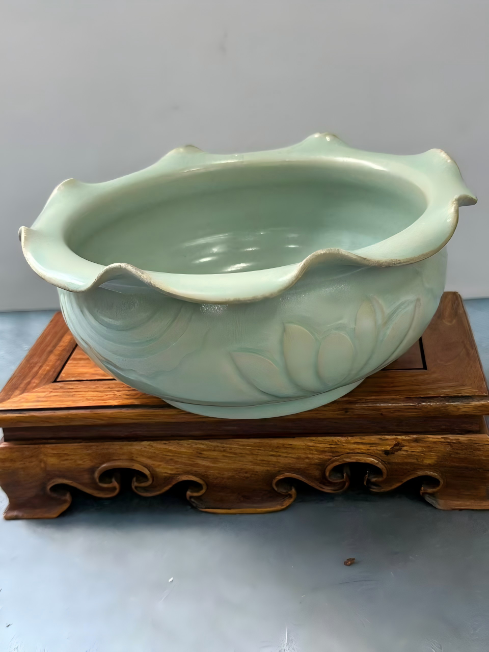 龙泉窑青釉刻花荷叶形洗
