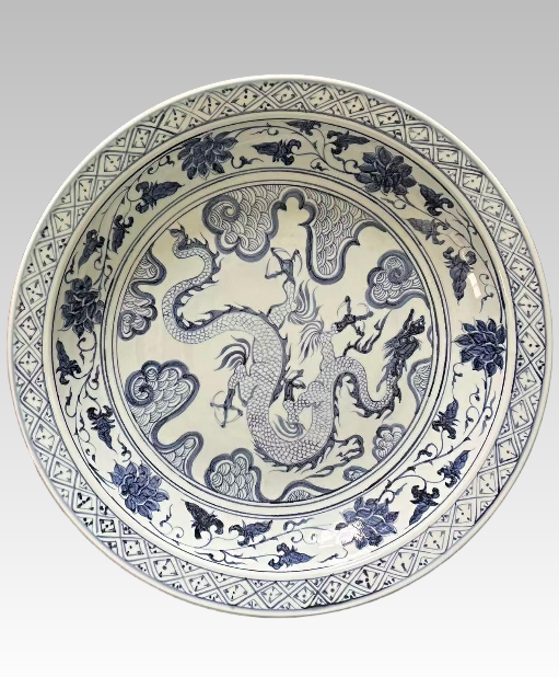 青花龙纹缠枝莲盘