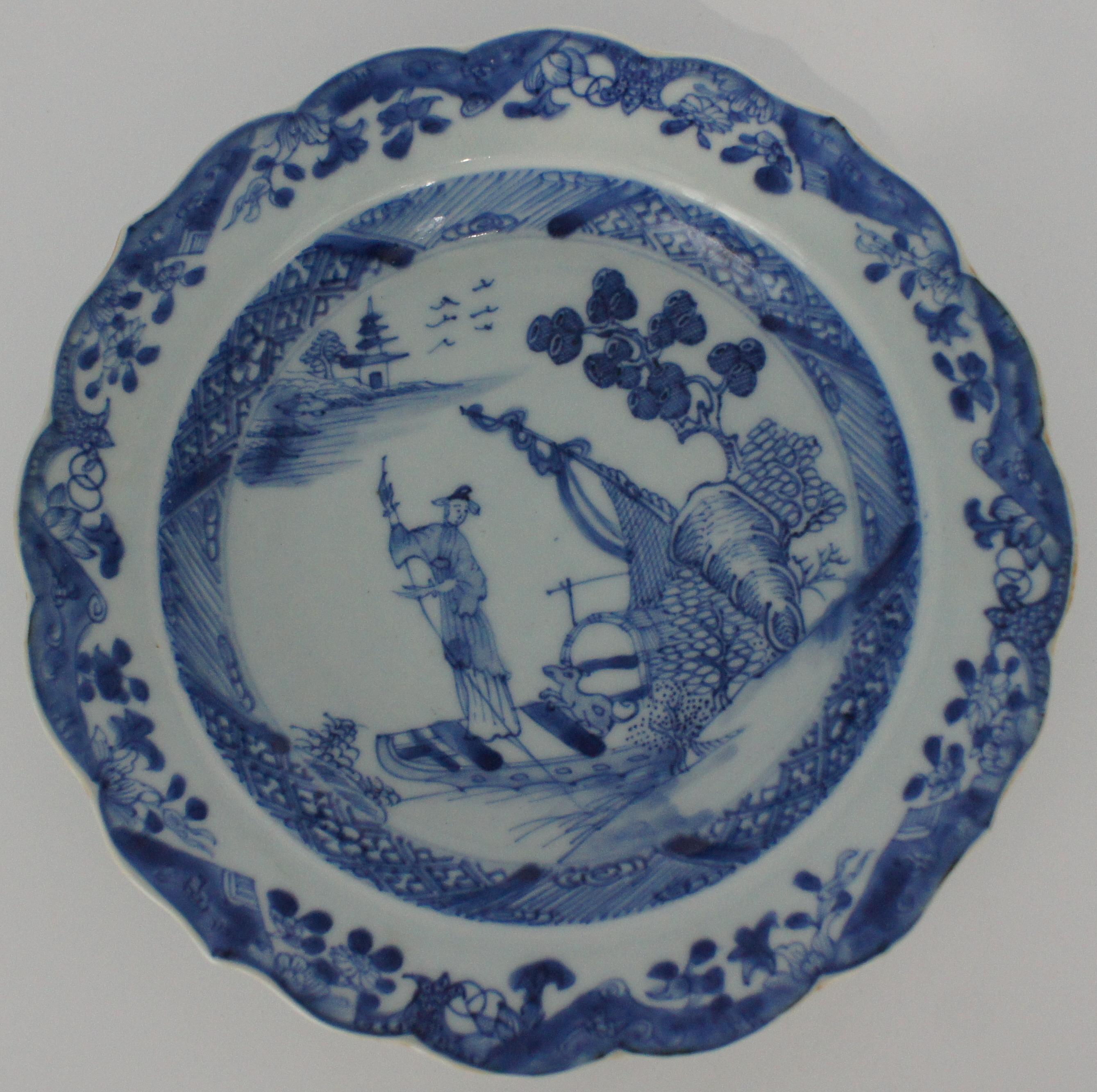 清乾隆青花渔家乐花口大盘 口22*高4cm