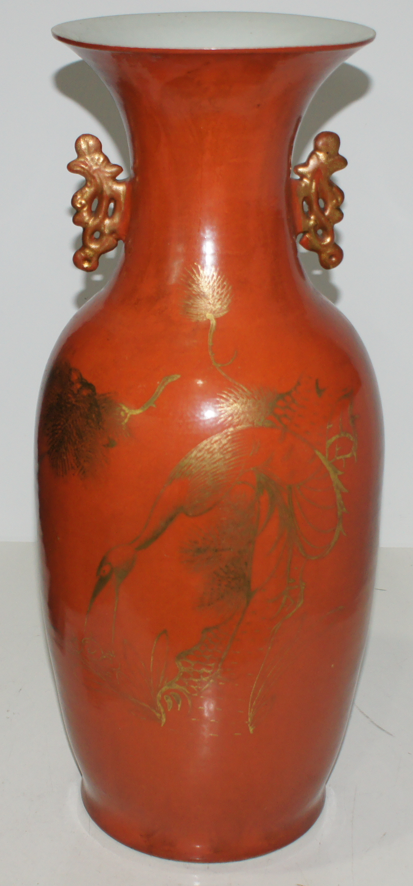 矾红描金松鹤延年瓶 口21*高58cm