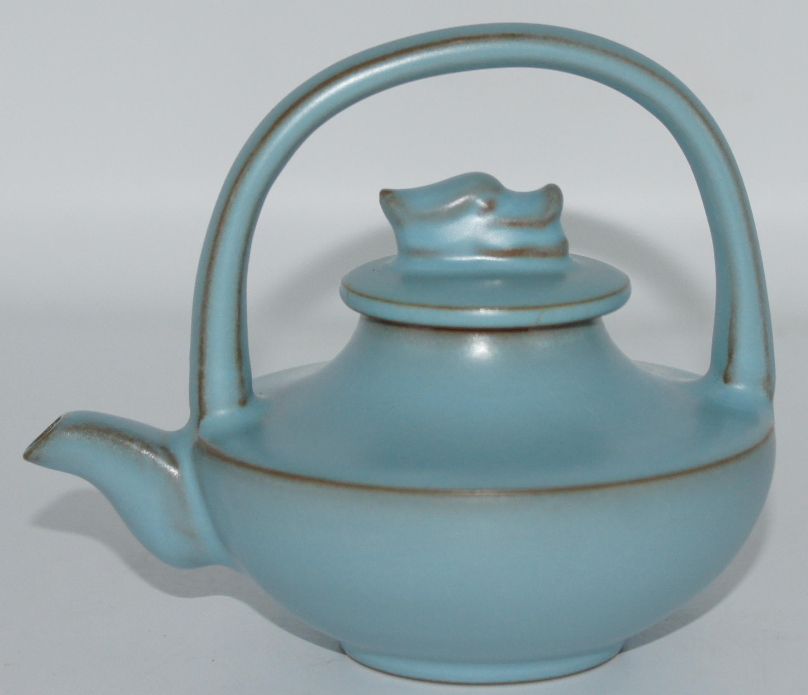 汝窑硬提梁壶 高12*长14cm