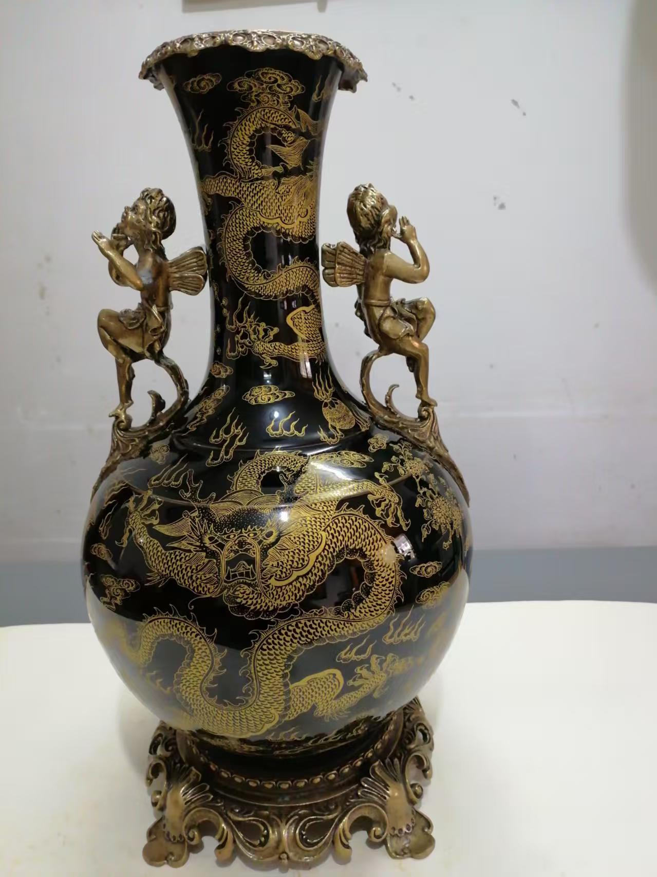 康熙黑釉金足金口瓷瓶