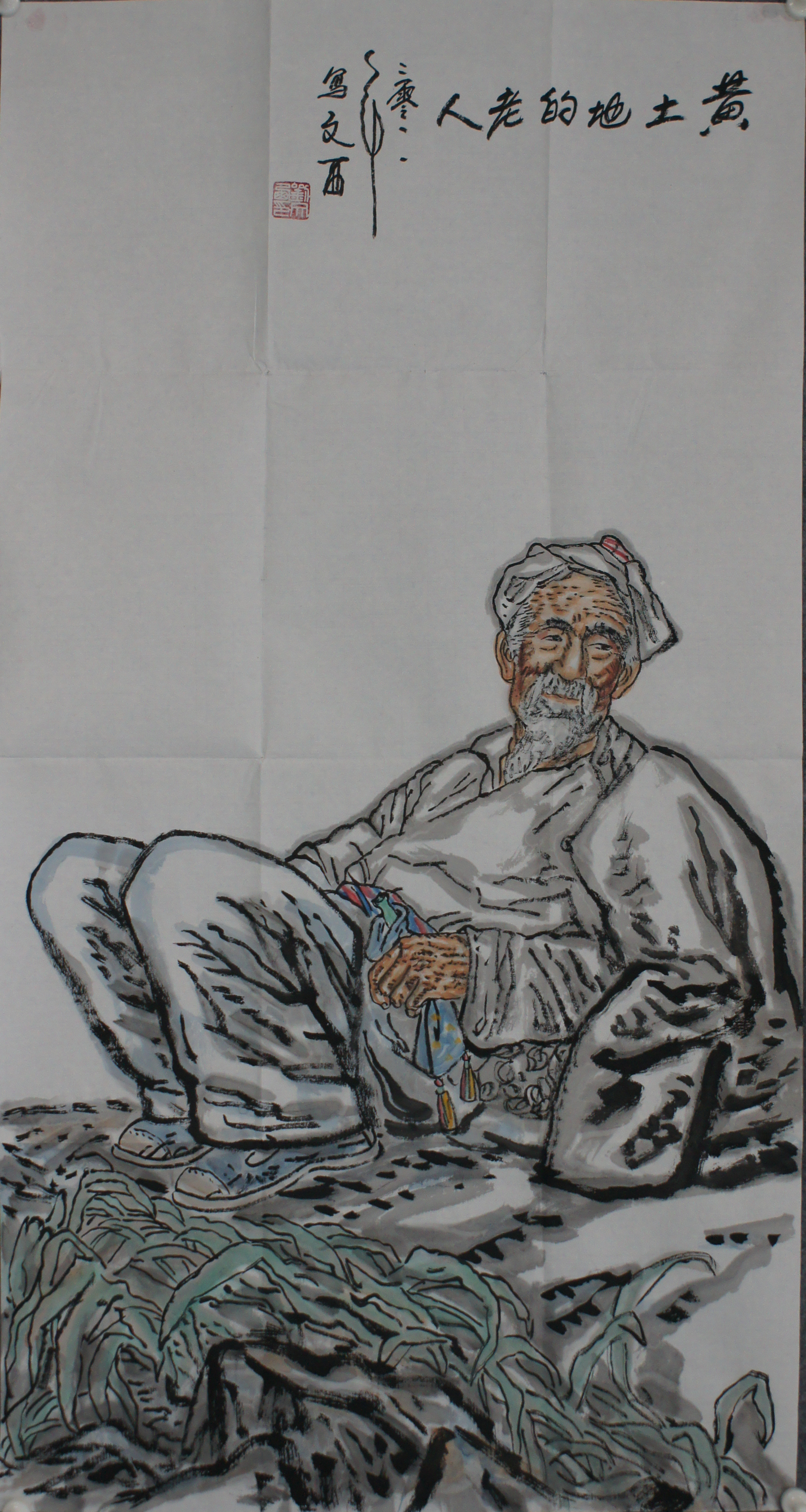 刘文西款 黄土地的老人 99.5*52.5cm