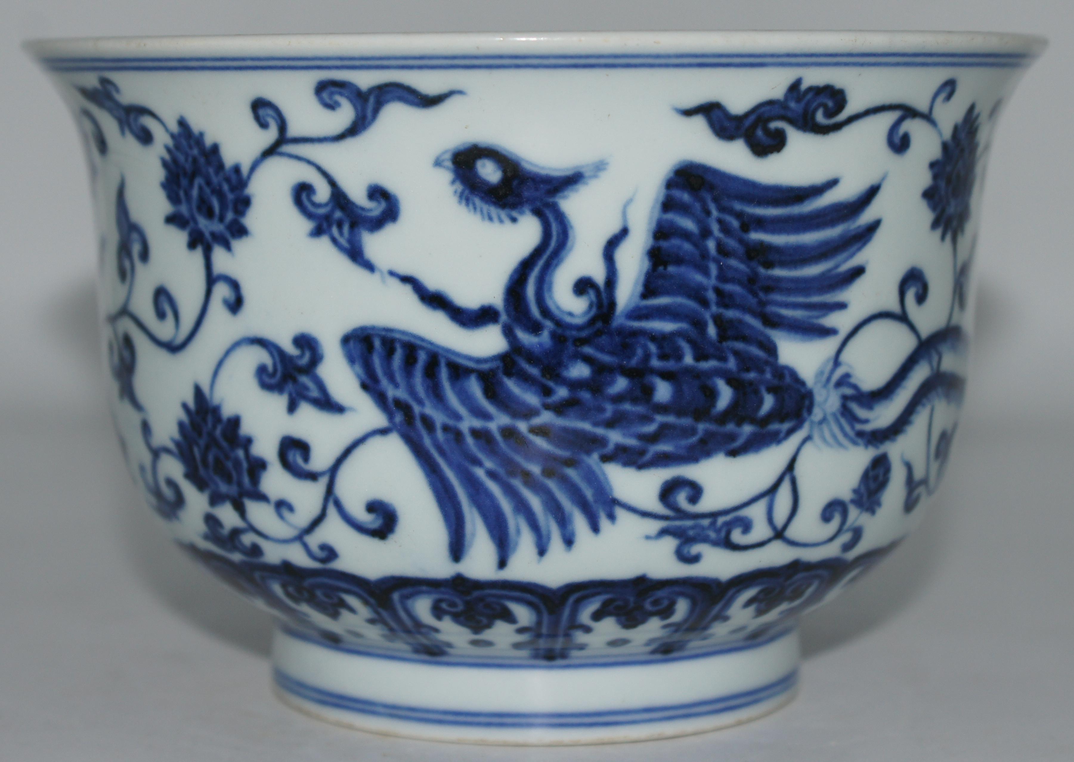 大明宣德款 青花缠枝莲凤纹金钟碗 口15.5*高10cm
