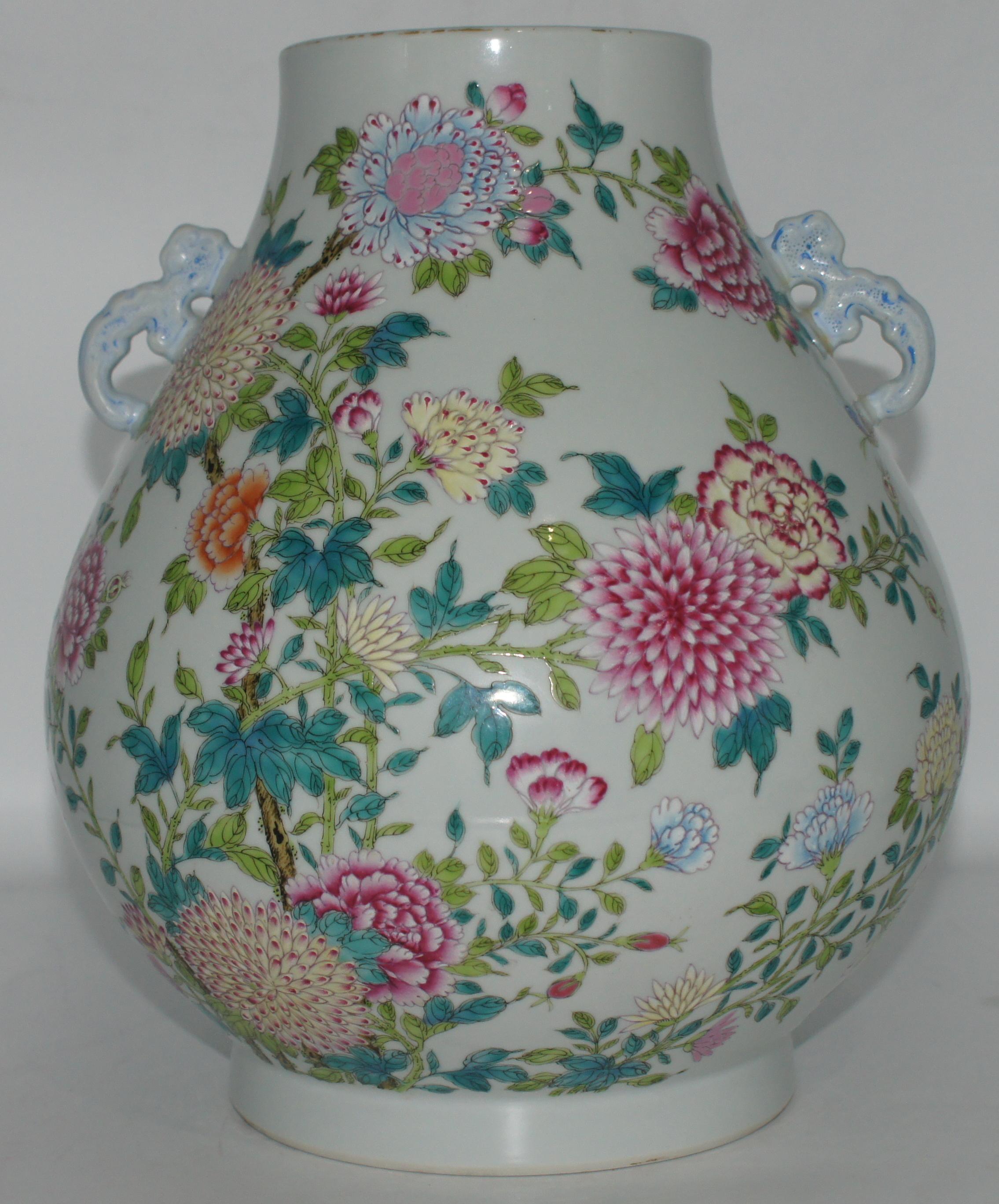 大清乾隆款 珐琅彩花开富贵如意耳尊 口13*高32.5cm