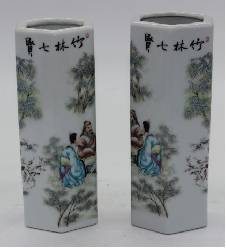 粉彩竹林七贤笔筒一对