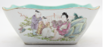 粉彩人物四方碗