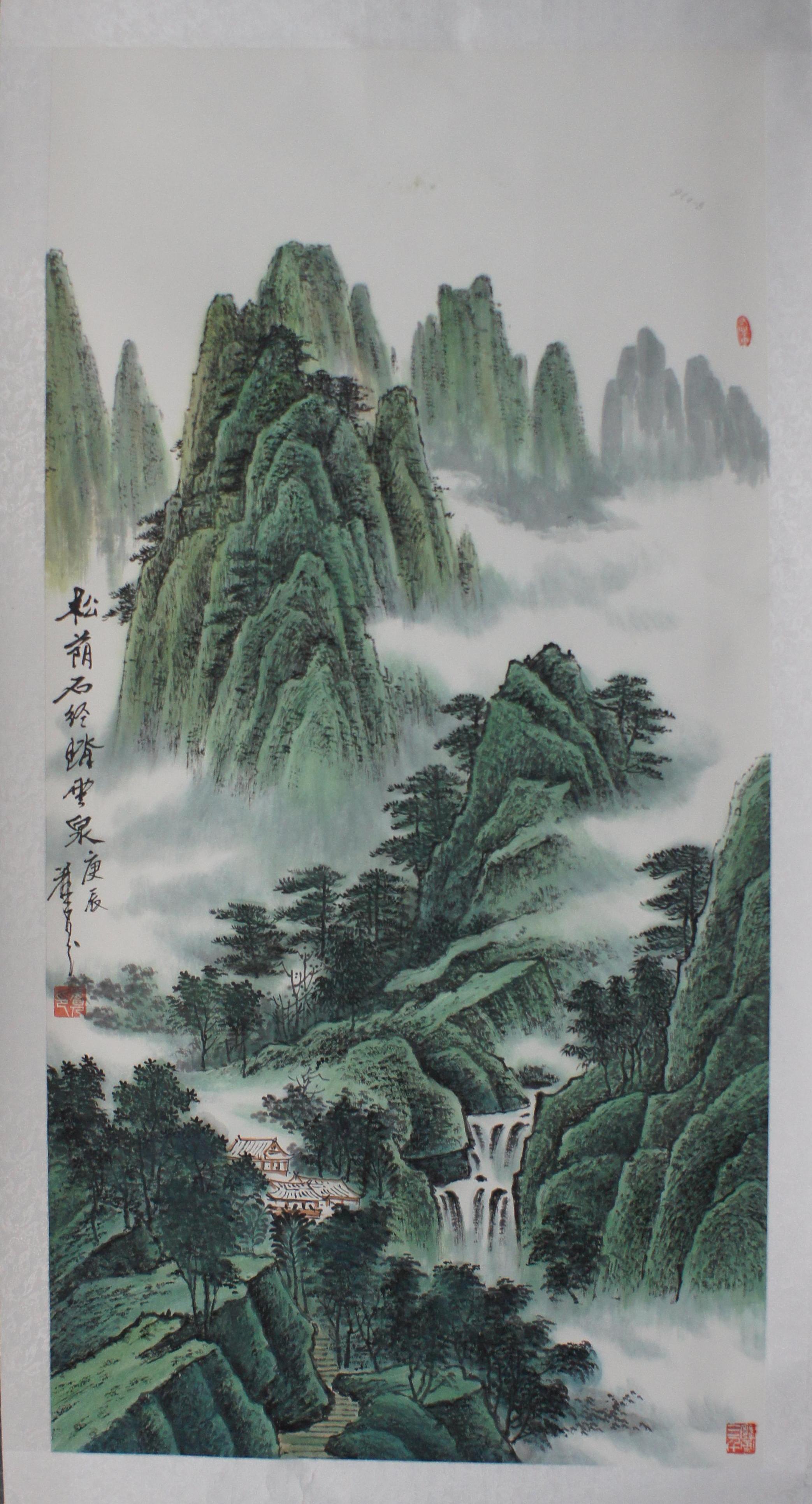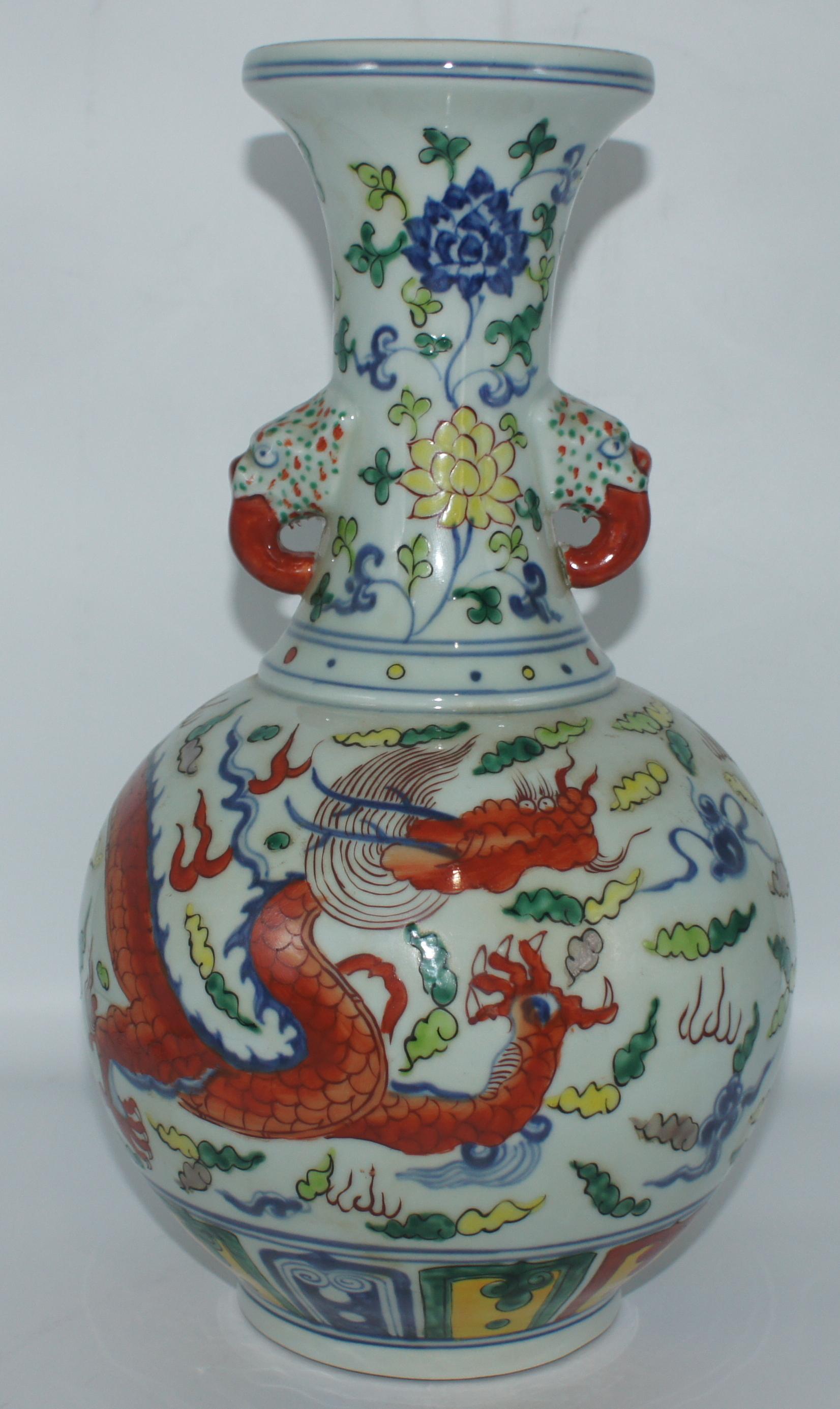 大明宣德款 五彩云龙纹兽耳瓶 口12*高38cm