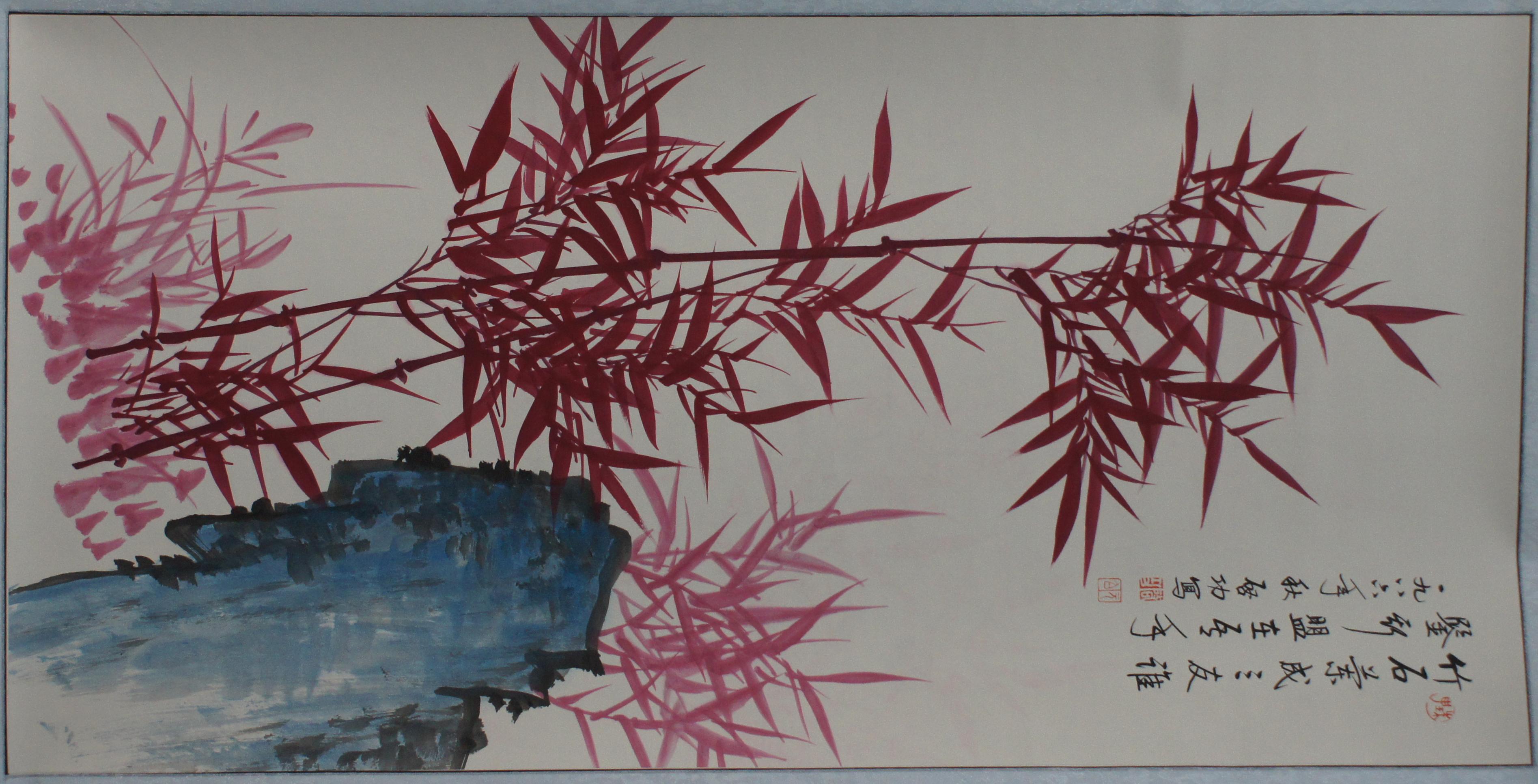 启功款 竹石图 50*100cm
