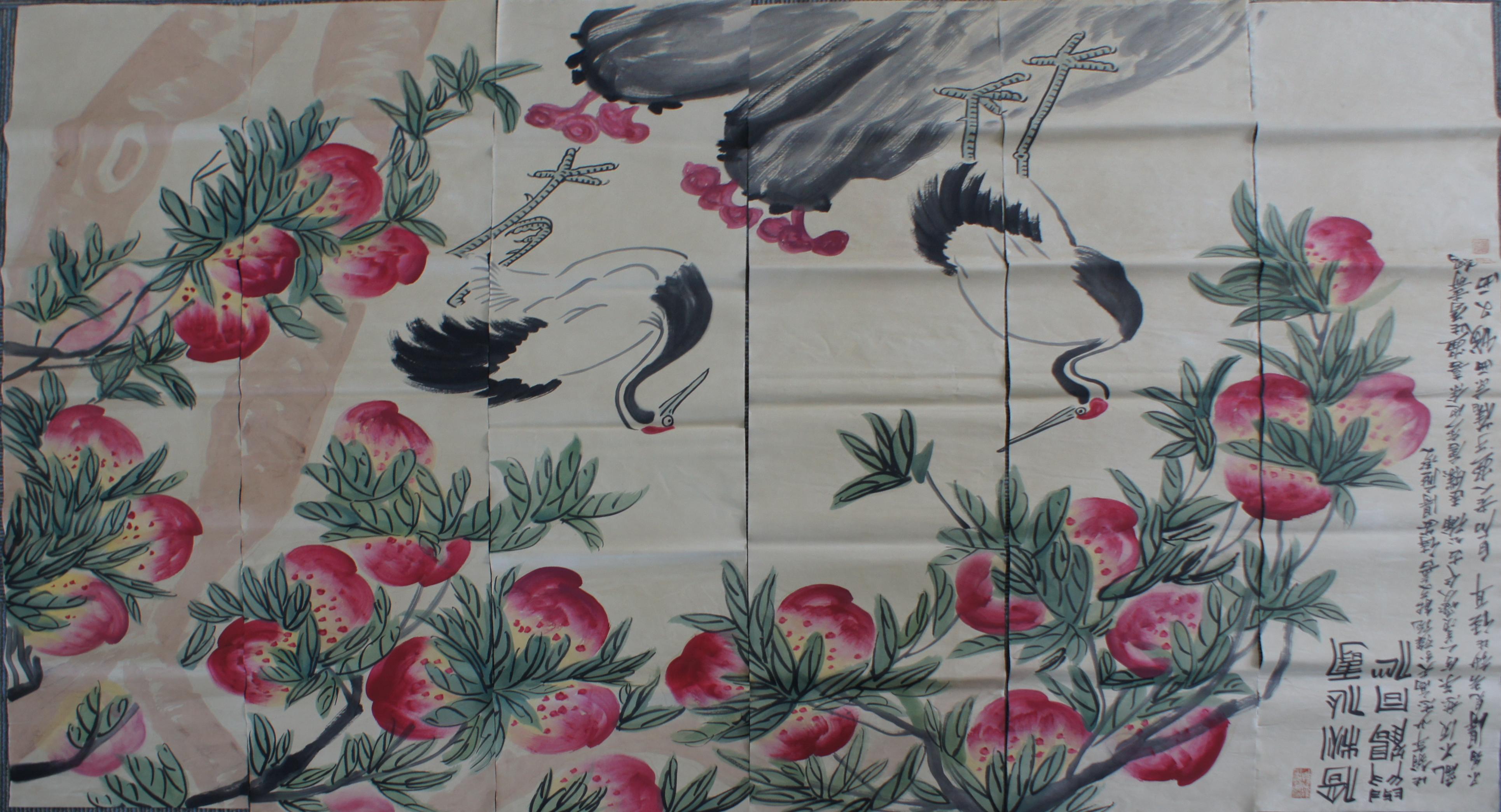 齐白石款 延年益寿 与鹤同心 137*34cm