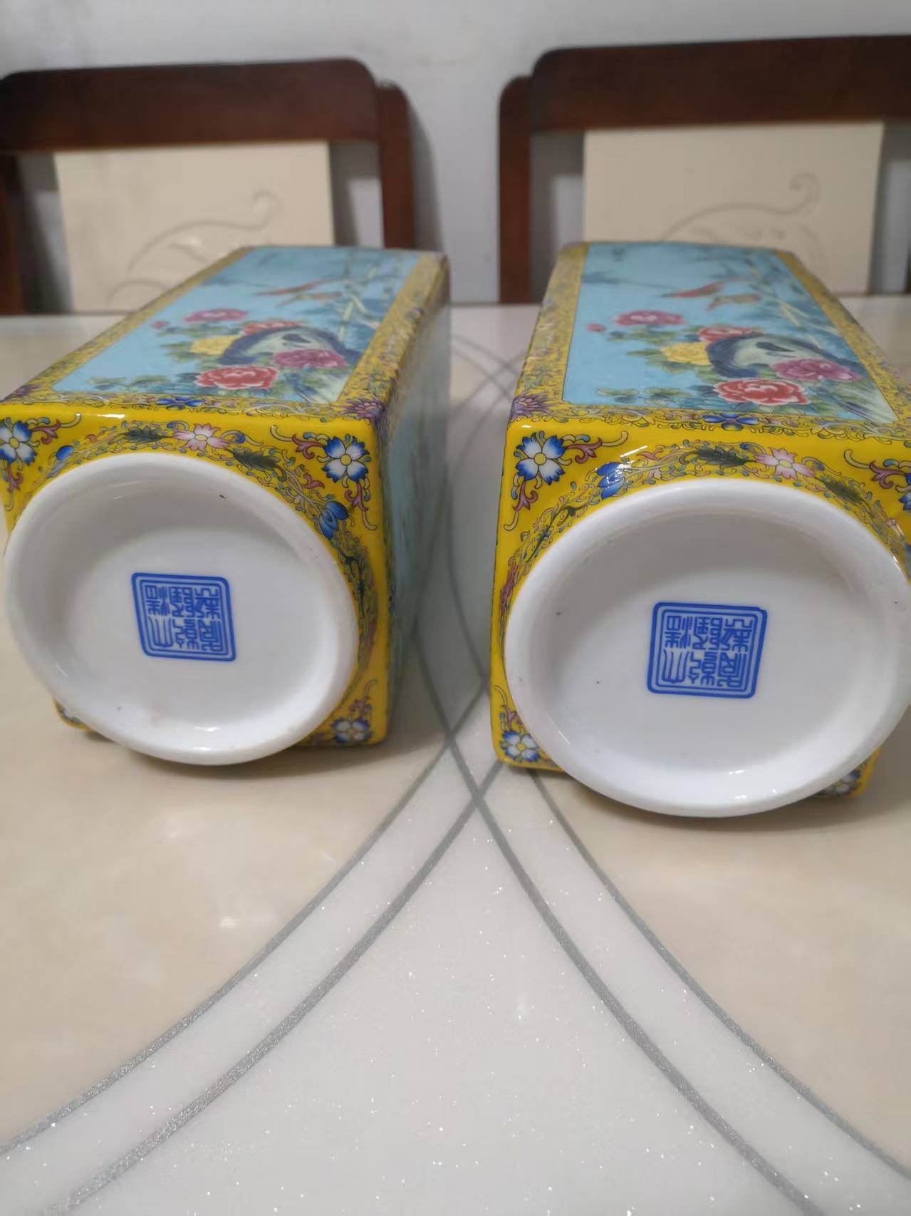 花鸟四方瓶