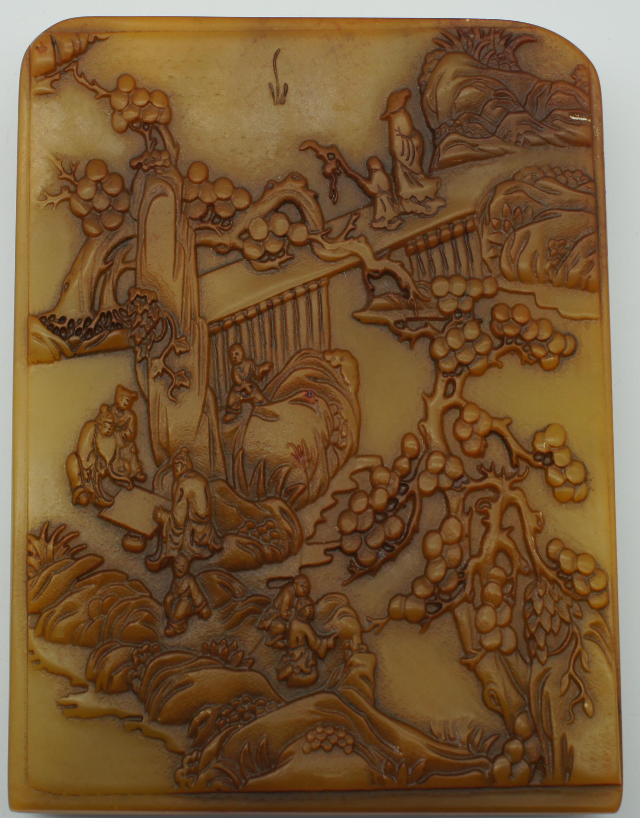 田黄石浅浮雕高仕访友图乾隆御览宝玺 长14.5* 宽4*高20cm3千克余
